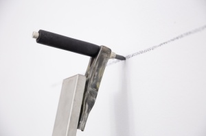 In Riflessioni (allontanarsi dal concreto) l’equilibrio o disequilibrio del sé rappresenta un momento di profonda intuizione nel lungo percorso di Mauro Ghiglione: il filo staccato dal suolo su cui l’equilibrista di muove, attratto e insieme respinto dall’horror vacui, e la pagina vuota di cui mittente e destinatario possono scrivere e riscrivere il contenuto, sono metaforicamente il delinearsi di una individualità estranea agli schemi e alle convenzioni della prospettiva comune. Ghiglione dal suo anarchico point of view vede quello che altri non vedono, o lo vede in modo diverso / unico in quanto è in-immaginabile e allo stesso tempo in-eludibile un linguaggio comune, valido per tutti.
